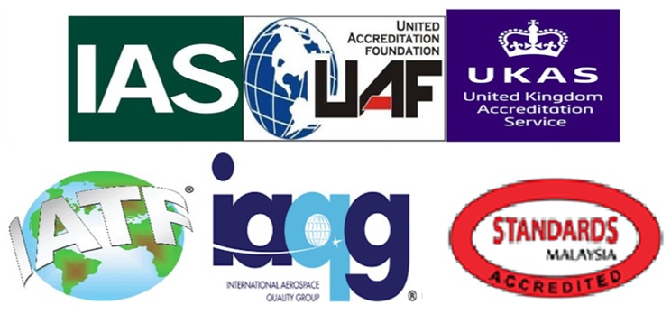 ECSSB audit and issue internationally accredited IAS USA, UAF USA, NAC USA, UKAS UK, DSM Malaysia, SCC Canada, DAKKS Germany, IATF, AIQG certification against the following popular standards via IAF approved accredited certification body.