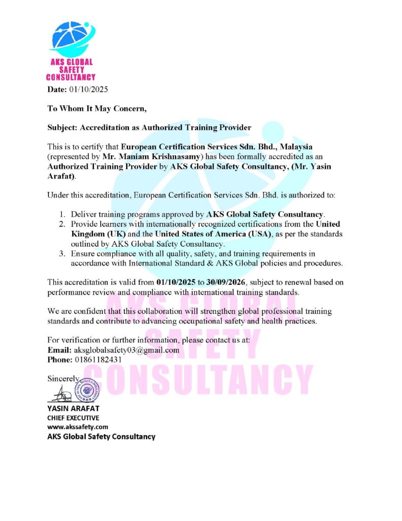 Authorized Training Provider (AKS Global Safety Consultancy)