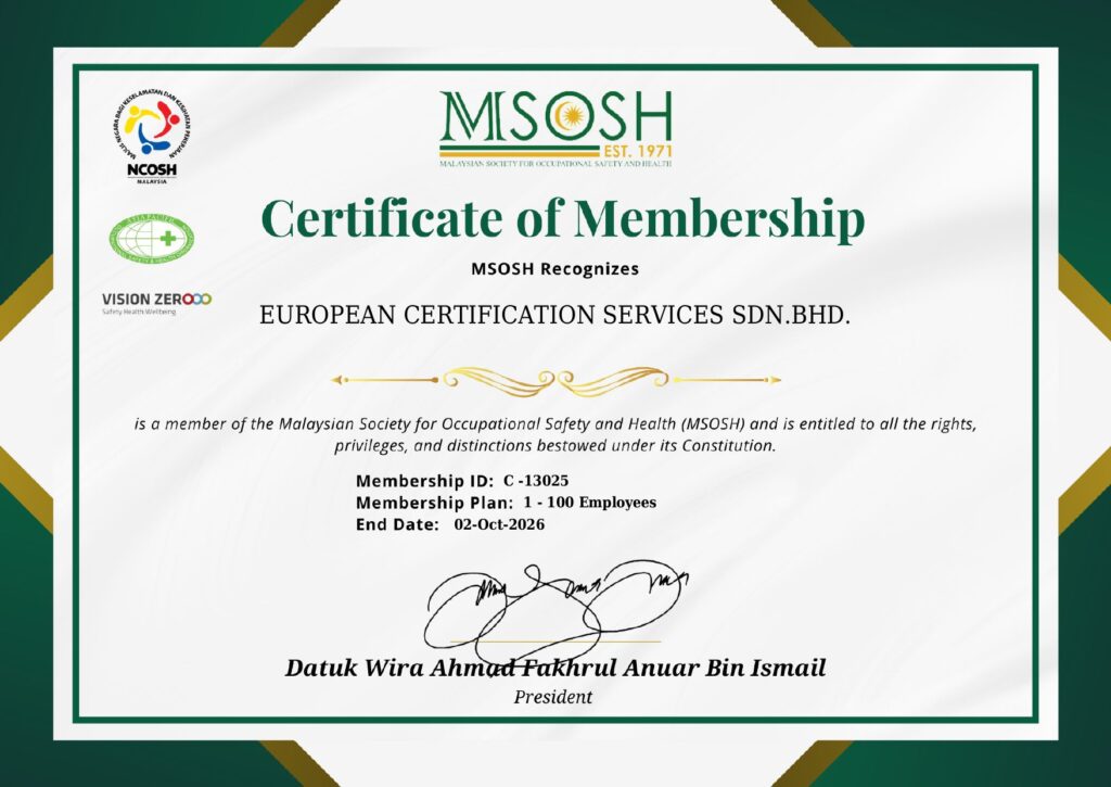 Malaysian Society for Occupational Safety and Health Membership (MSOSH)